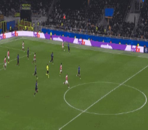 开场之后,阿森纳反客为主,攻势如潮,完全压制国米,蓝黑军团只能被动防守。